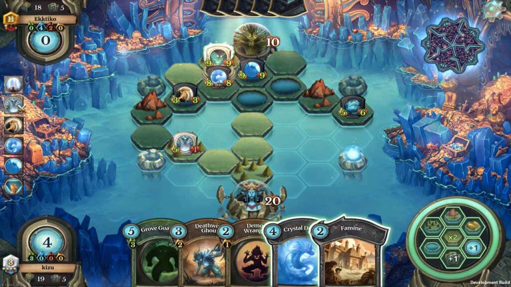 Фаерыя вырабляе цудоўнае першае ўражанне цудоўным мастацтвам, якое можна знайсці ў адкрыцці роліка, насычаным яркімі фарбамі, якія адлюстроўваюць фантастычны свет істот і мячоў – гэта ўсё, што мне трэба, каб заахвоціць мяне да гульні. Аднак у апошні раз я сапраўды заўважаю прыгажосць твораў мастацтва, астатнія прадстаўлены на залішне маленькіх шасцігранных картах гэтай стратэгічнай карты.Faeria распрацавана як нешта сярэдняе паміж CCG і традыцыйнай настольнай гульнёй, у якой вы будуеце розныя землі, каб дасягнуць і атакаваць ворага. У пакрокавай структуры вы і ваш супернік можаце гуляць на двух раўнінных землях або на адной спецыяльнай зямлі – зялёных лясах, вогненных гарах, пяшчаных пустынях і вадзяных азёрах. Ёсць элемент стратэгіі, які неабходны, як і ў любой картачнай гульні, але ён адчувае сябе значна важней у Faeria, чым у гульнях Like Magic: The Gathering і Hearthstone. Мне вельмі спадабалася планаваць маршруты да праціўніка і знаходзіць новыя спосабы барацьбы з бортам.