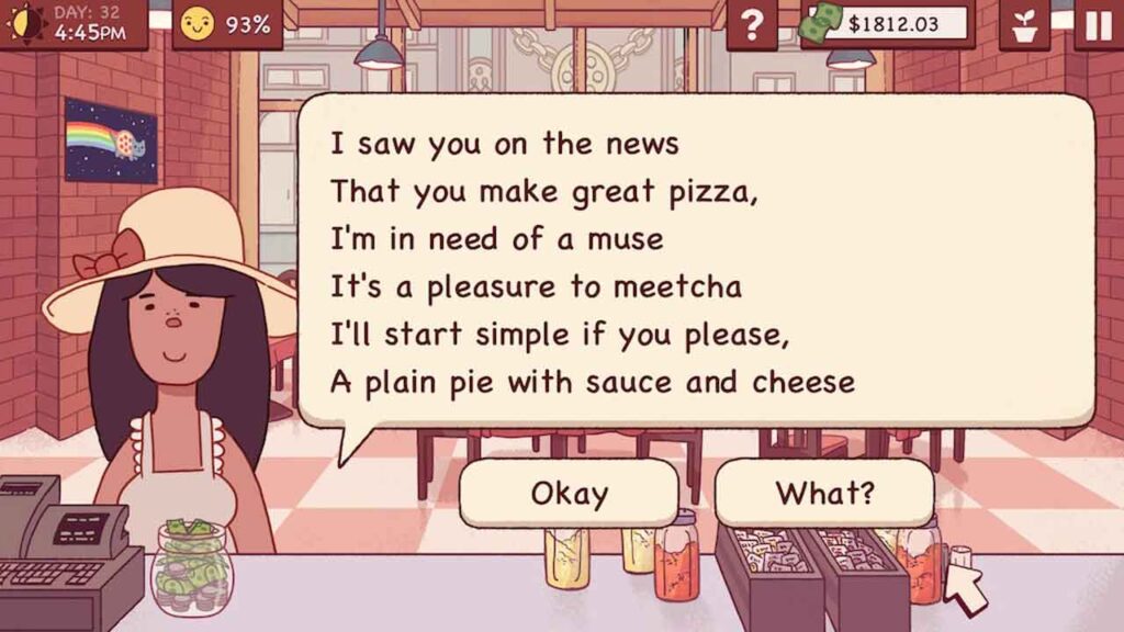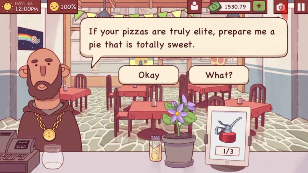У адрозненне ад большасці рэстаранных сімаў, ваша піцэрыя працуе строга для аднаго чалавека. Вы не будзеце наймаць персанал для падрыхтоўкі інгрэдыентаў, ачысткі альбо аказання дапамогі якім-небудзь чынам. Купля розных інгрэдыентаў павялічвае прыбытак, не чакайце прыняцця рашэнняў адносна рэкламы альбо франчайзінгу. Такім чынам, добрая піца і выдатная піца могуць адчуваць сябе больш абаяльна, чым складана, і поспех, але гарантаваны, калі вы ўкладзеце дастаткова часу.Для некаторых, хто прывык да пастаянных нягод, добрая піца, выдатная піца могуць быць занадта спакойнымі. Але я падазраю, што іншыя, хто шукае гульні для самаадчування, з якой яны могуць адпачыць, палічаць, што кіраванне іх мудрагелістай піцэрыяй падабаецца. Як толькі вы выявіце розніцу паміж добрай піцай і выдатнай піцай, назва можа паўтарацца. Але да таго часу гульня адчуваецца як інтэрактыўны эквівалент камфортнай ежы.