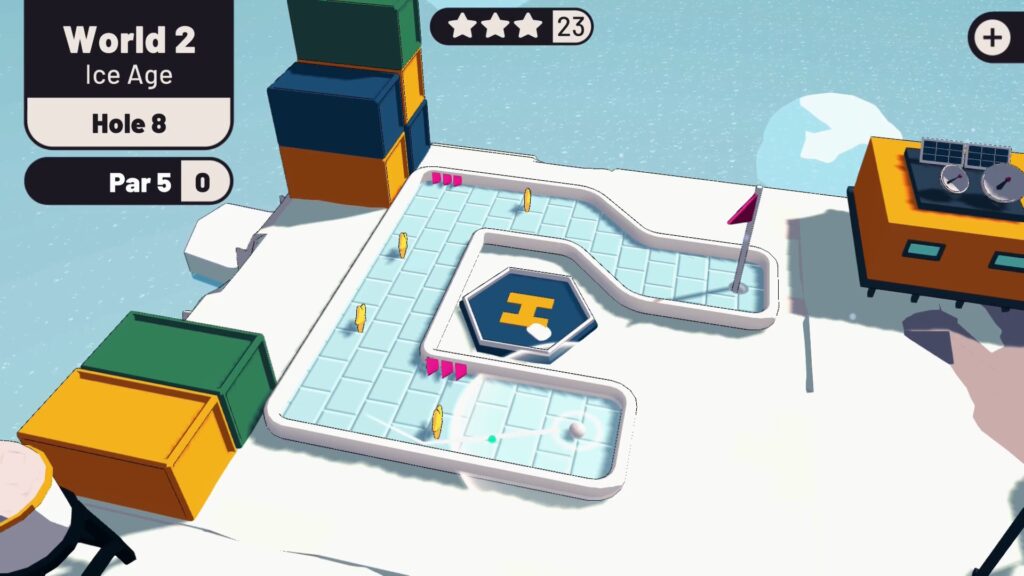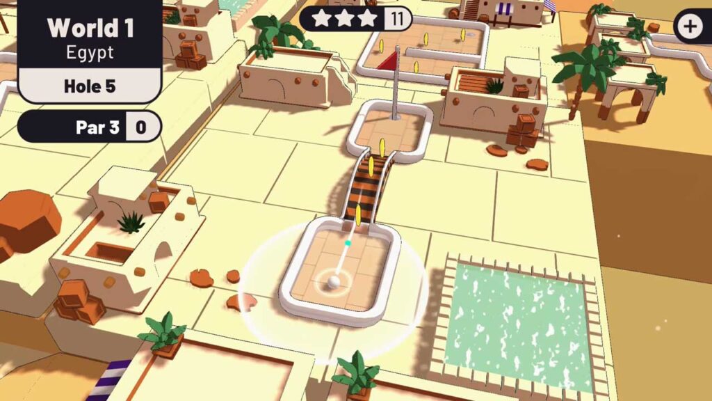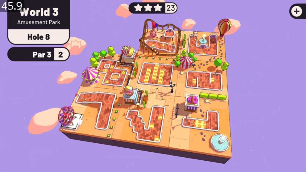 Ваш ліміт тут вызначаецца стандартам “Par”, які ўяўляе сабой колькасць удараў, якія вам тэарэтычна трэба зрабіць, каб прабіць лунку. Максімальная колькасць удараў, якія можна выкарыстоўваць, роўная 3, і па гэтай прычыне вы павінны накіраваць мяч у лунку максімум трыма ўдарамі ў кожным раўндзе і ў той жа час паспрабаваць сабраць усе зоркі на шляху.