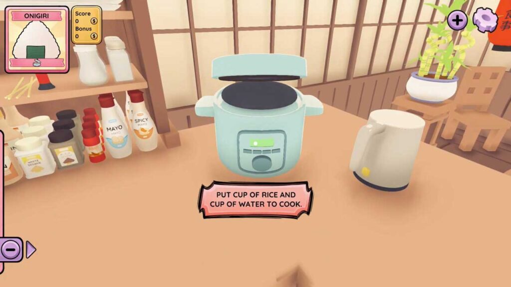 На кухні вашага рэстарана ёсць усё неабходнае абсталяванне і інгрэдыенты для падрыхтоўкі найсмачных сушы. З пункту гледжання першай асобы, вы можаце падабраць шмат рэчаў і размясціць іх куды заўгодна. Вы атрымліваеце заказы ад кліентаў і павінны прытрымлівацца і запаўняць свой спіс спраў на кожным этапе, выбіраючы з мноства даступных відаў рыбы, гародніны і спецый і дадаючы іх у адпаведнасці з пажаданнямі кліента. Мне спадабаўся невялікі кантрольны спіс у левай частцы відарыса, які дапамагае адсочваць, што трэба зрабіць. Гэты плагін карысны ў большасці выпадкаў і не дае гульцам збіцца з шляху.