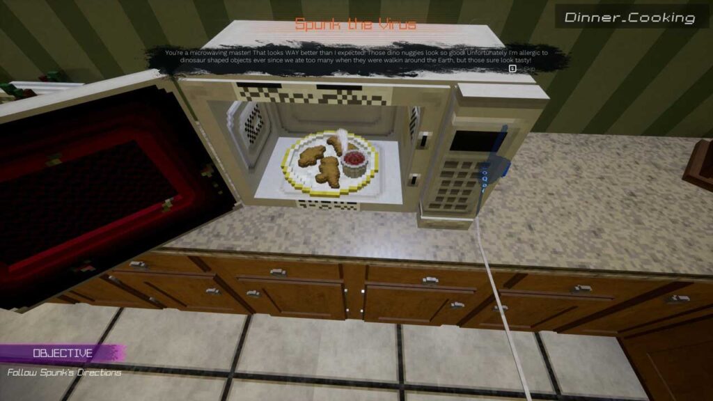 Пачнем з самага відавочнага: унікальны візуальны стыль, мноства гумару і абсурду, а таксама мноства ўзроўняў. Лічбавая эстэтыка, натхнёная тэхналогіямі 90-х, відавочная. ЭЛТ-экраны, пікселізаванае меню і наўмысныя візуальныя збоі дадаюць персанажу асаблівы шарм. Саўндтрэк гульні на сінтэзатары таксама поўны скажоных імпульсаў і дынамічных змен, якія адлюстроўваюць эмоцыі кожнай сцэны. Гукавы дызайн спалучае гумар, іронію і меланхолію, ідэальна дапаўняючы візуальны хаос.