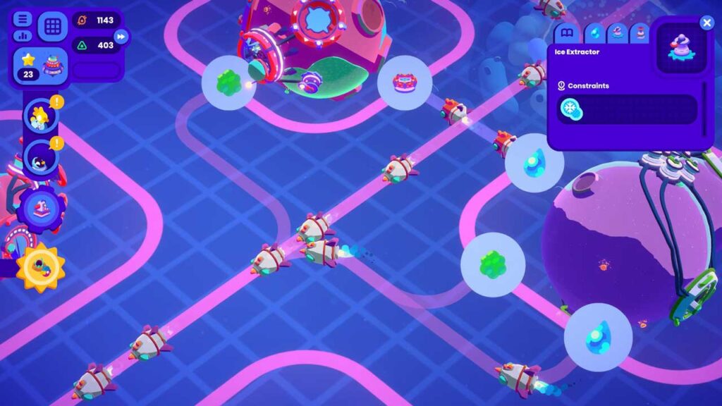 Сістэма прызначае гульцам місіі па дастаўцы рэсурсаў, і кожны раз, калі ім даецца місія, яны павінны выбіраць паміж задачамі, якія прынясуць ім сродкі або тэхналагічныя ачкі. Акрамя выканання місій, гульцы таксама могуць зарабляць сродкі і тэхналагічныя ачкі, кіруючы сваім транспартным сродкам, каб збіраць залатыя і зялёныя сферы, якія выпадковым чынам з’яўляюцца на планетах.