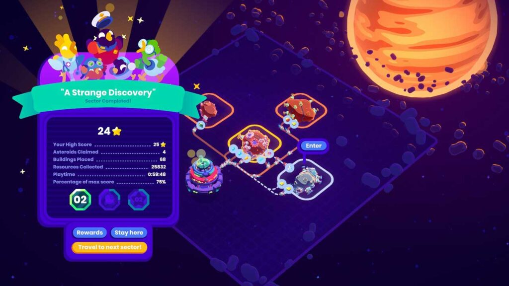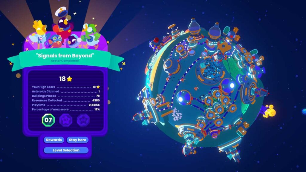 Насамрэч, гэта як суперказуальная версія Dyson Sphere Program. Магчыма, з-за ранняга доступу, Star Birds на першы погляд не здаецца такой ужо і ўражлівай. У цяперашні час ёсць сем місій, і іх выкананне займае каля шасці гадзін. Улічваючы паўтаральную атмасферу гульні і неабходнасць збіраць зоркі, як тлумачыцца ніжэй, гэта, верагодна, зойме некалькі дзясяткаў гадзін, таму нават цяпер гэта ўсё яшчэ даволі ўражвае.